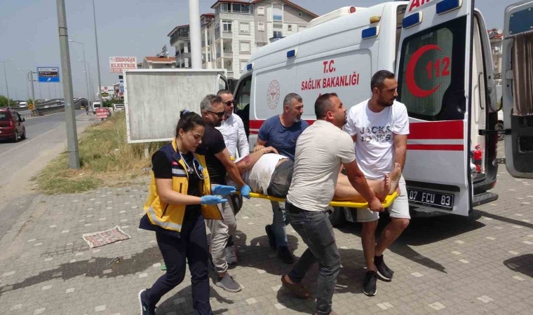 Kaza, Alanya-Antalya D-400 kara yolunda meydana geldi. Alanya istikametinden Antalya istikametine seyir halindeki Mehmet Ali Çakmakçı’nın kullandığı 07 LRE 56 plakalı motosiklet, Manavgat çevre yolunda aynı istikamette gitmekte olan Burcu Uğurlu Kabukçu’nun kullandığı 06 BIF 297 plakalı otomobile arka tamponundan çarptıktan sonra devrilerek sürüklendi. Güvenlik kamerasına saniye saniye yansıyan kazada yaralanan motosiklet sürücüsü Mehmet Ali Çakmakçı, 112 Sağlık ekibinin olay yerindeki müdahalesinin ardından ambulansla hastaneye kaldırıldı.