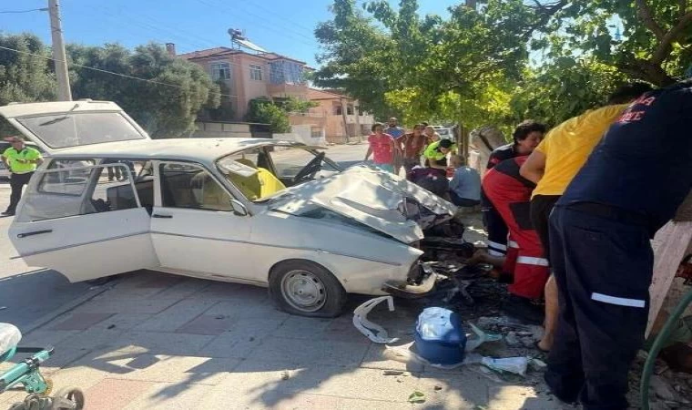 Otomobilin çarpıp direğe sıkıştırdığı yayanın bacağı koptu