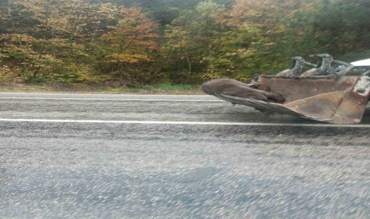 Otomobilin çarptığı bozayının ise olay yerinde telef olduğu tespit edildi. Karayolları ekipleri olay yerinden telef olan ayıyı kepçe yardımıyla aldı.