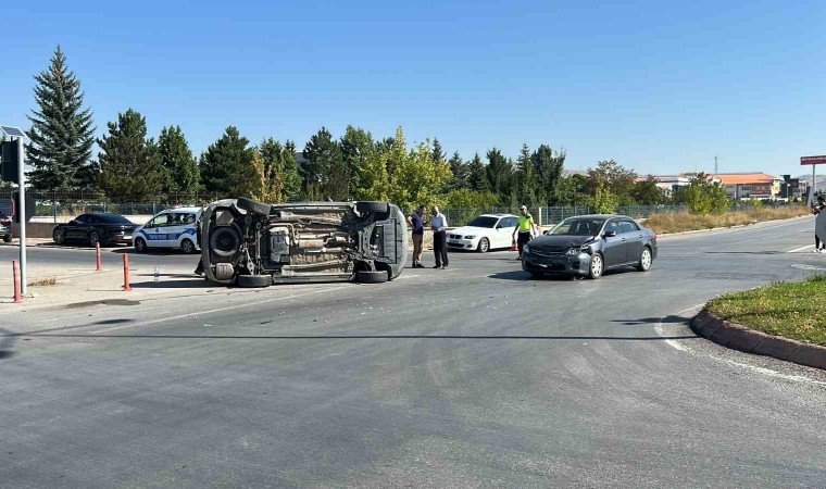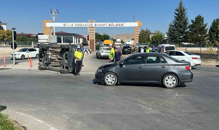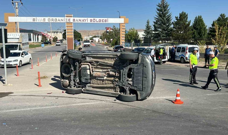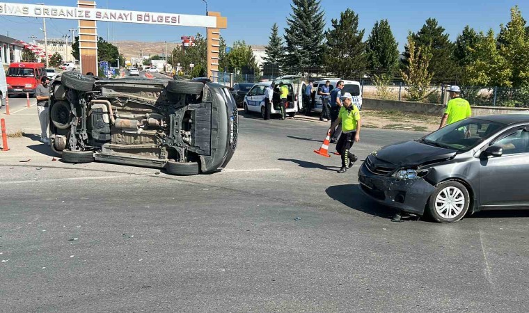 Sivas’ta otomobilin yandan çarptığı Çin cipi Chery yan yattı, sürücüsü yaralandı.