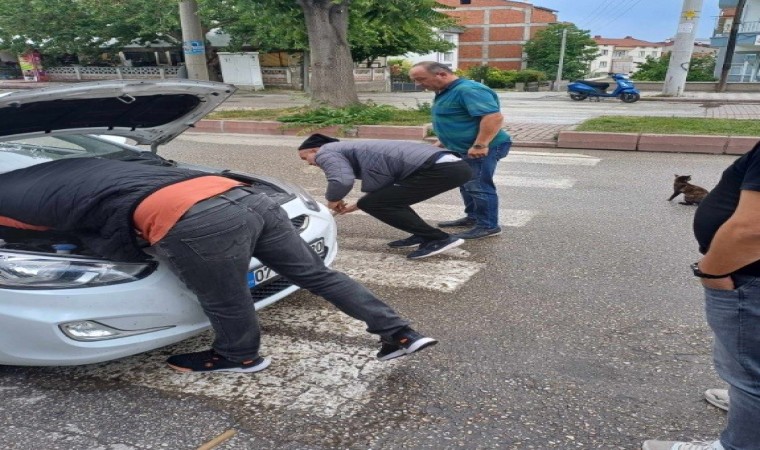 Duyarlı vatandaşlardan Kamil Gümüş, "Otomobil Allah’tan yavaş şekilde ilerliyordu. Sanırım yeni hareket etmiş ve şoförünün de şüphelenmesi ile bize de sorması ile ön motor kısmında kedi olabileceğini söyledik. İtfaiye ekiplerini çağırmaya gerek görmeden kediyi sağ olarak çıkarttık. Bu tür konularda tüm şoför arkadaşlar aracın kontağına basmadan önce kontrol etmeleri gerekiyor" dedi.