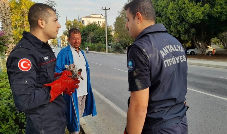Antalya’nın Gazipaşa ilçesinde, otomobilin motor kısmına giren yavru kedi itfaiyenin 3 saatlik çalışmasıyla kurtarıldı.