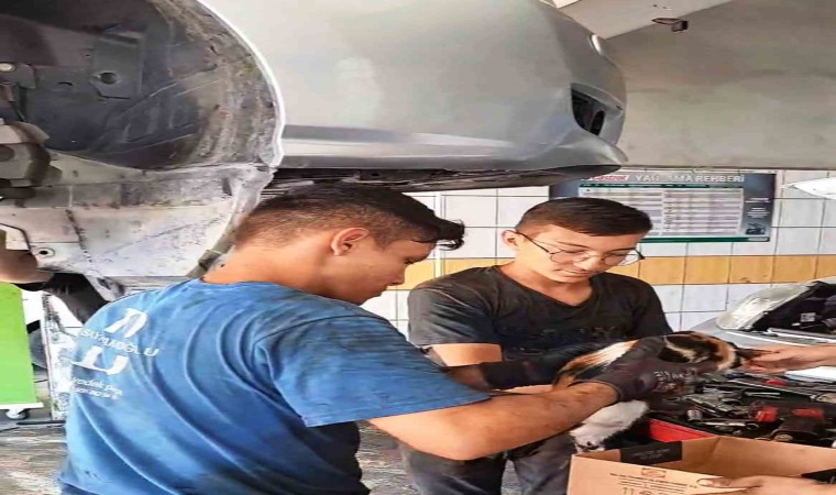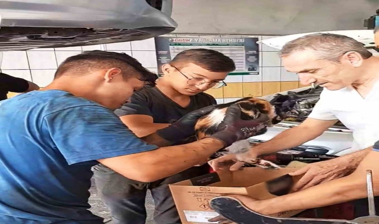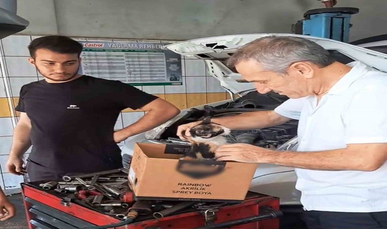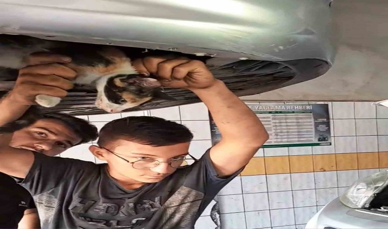 Samsun’un Terme ilçesinde otomobilin motor kısmındaki devirdaim kayışına sıkışan kediyi kurtarmak için araç sahibi ve ustalar seferber oldu.