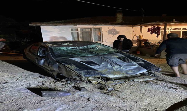 Edirne’de otomobilin sulama kanalına uçma anı güvenlik kamerasına saniye saniye yansıdı.