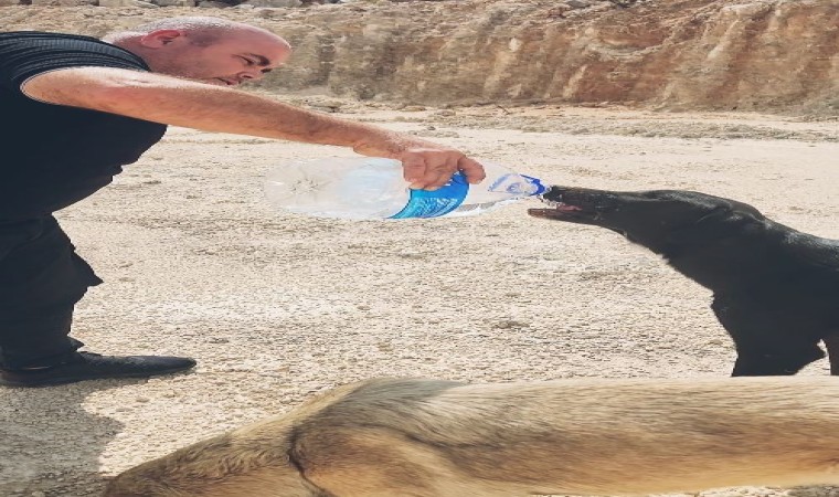 Türkiye’de etkili olan aşırı sıcakların etkilediği illerin başında gelen Antalya’da, Aksu Üretici Birliği Başkanı Turan Şahin Antalya-Isparta-Burdur yolu üçgeninde kalan bir bölgede iki köpeğin bitkin halde olduğunu gördü. Şahin köpeklerin susamış olabileceğini düşünerek otomobilinde acil durumlar için taşıdığı 5 litrelik suyu elleriyle köpeklere içirdi.