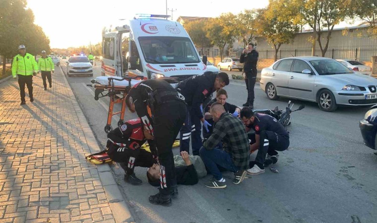 Karaman’da otomobil ile çarpışan elektrikli bisiklet sürücüsü gencin ayağı kırıldı.