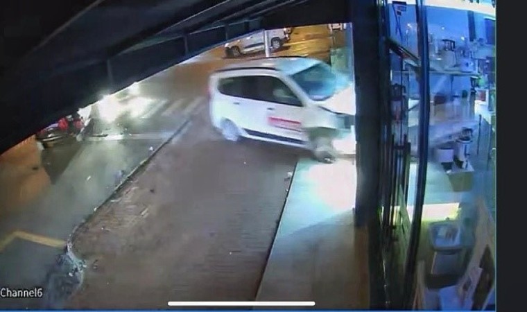 Edinilen bilgiye göre, Engin Uçar idaresindeki 34 DYC 826 plakalı hafif ticari araç caddede seyir halindeyken ters istikametten yola çıkmaya çalışan S.D. iaresindeki plakası öğrenilemeyen otomobille çarpıştı. Çarpışmanın şiddetiyle hafif ticari araç beyaz eşya dükkanına daldı. Facianın eşiğinden dönülen kazada sürücüler hafif şekilde yaralandı. Durumun bildirilmesi üzerine olay yerine polis ve 112 Acil Servis ekipleri sevk edildi. Sağlık ekiplerinin ilk müdahalesinin ardından yaralılar hastaneye kaldırılırken kaza anı iş yerinin güvenlik kamerasına saniye saniye kaydedildi.