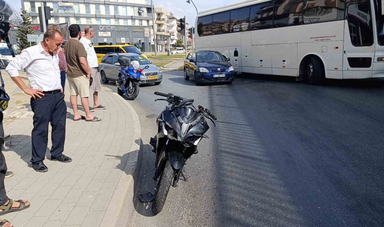 Antalya’nın Manavgat ilçesinde motosikletin otomobille çarpışması sonucu meydana gelen kazada motosiklet sürücüsü yaralandı. Kaza anı güvenlik kamerasına yansıdı.