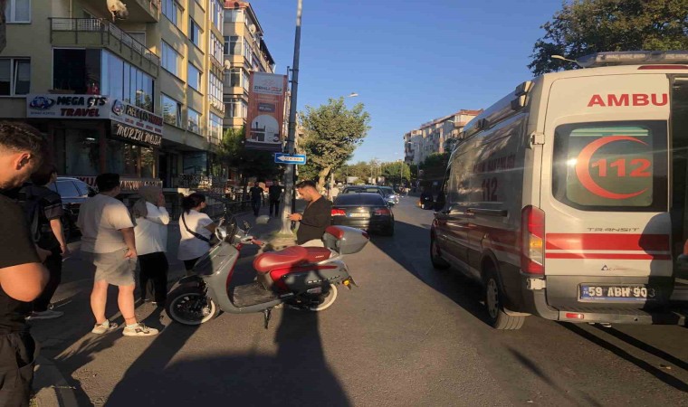 Tekirdağ Çorlu’da otomobil ile çarpışan motosikletli genç kadının yaralandığı kaza kameraya yansıdı.