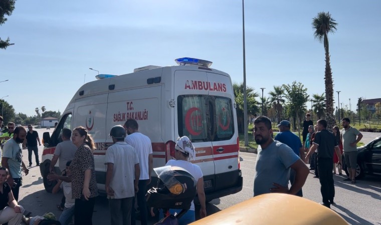 Hatay’ın İskenderun ilçesinde otomobille çarpışan motosikletin sürücüsü ve yanındaki 2 çocuk yaralandı.