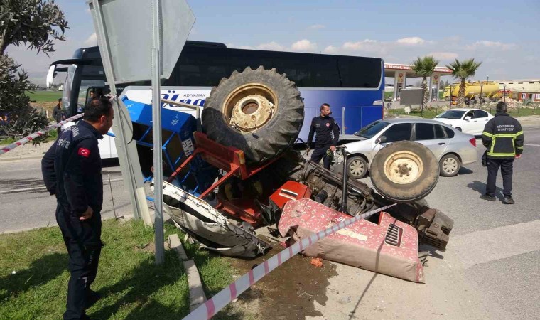 Adıyaman’da, otomobille çarpışan traktörün devrilerek ters dönmesi sonucu 1 kişi ağır yaralandı.