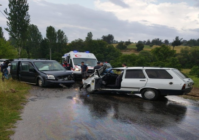 Otomobille hafif ticari araç kafa kafaya çarpıştı; 8 yaralı
