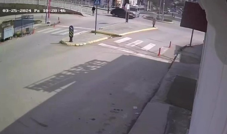 Amasya’da köprüden inen otomobille kavşağa giriş yapan hafif ticari araç çarpıştı. Kaza anı çevredeki bir güvenlik kamerasına yansıdı.