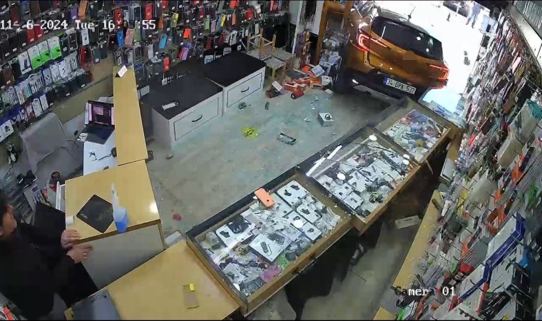 Muğla’nın Bodrum ilçesinde sürücüsünün fren yerine gaza bastığı otomobil, yol kenarındaki iş yerine girdi. O anlar güvenlik kamerasına yansıdı.