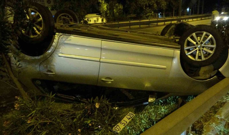 Antalya’da sürücüsünün direksiyon hakimiyetini kaybettiği otomobil önce refüje çarptı daha sonra takla attı. Kazada, otomobilde sıkışan sürücü ve yolcu şans eseri olay yerinden geçen itfaiye ekiplerince kurtarıldı.