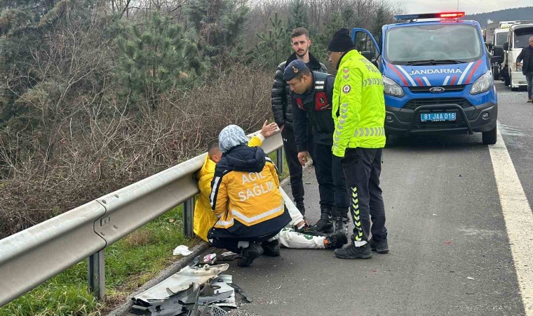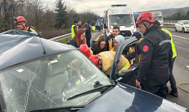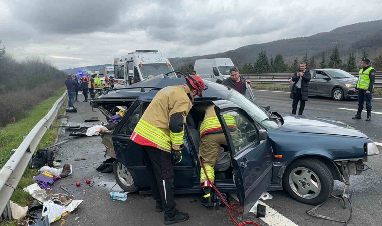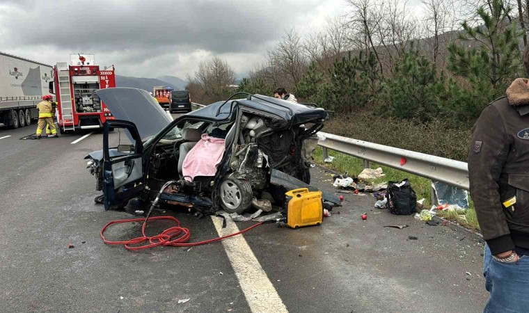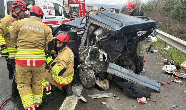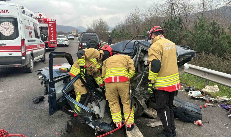 Anadolu Otoyolu Düzce geçişinde iki aracın çarpıştığı kazada hurdaya dönen otomobilde 1 kişi öldü. Kazada 2’si ağır 5 kişi yaralandı.