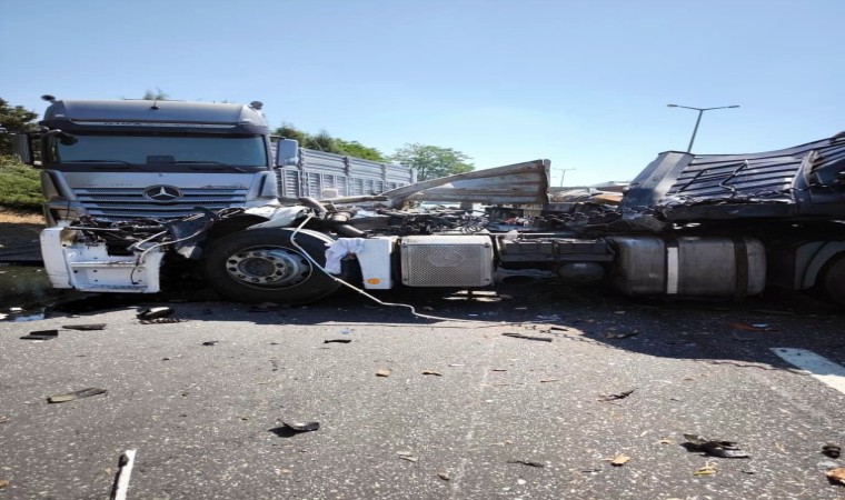 Anadolu Otoyolu Sakarya geçişinde iki tırın çarpışması neticesinde meydana gelen trafik kazasında kupası kopan tırın sürücüsü yaralandı.