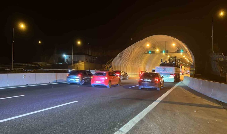 Bolu’da, 9 günlük bayram tatili nedeniyle yola çıkan tatilciler, gece saatlerinde Anadolu Otoyolu’nun Bolu Dağı Tüneli geçişinde yoğunluk oluşturdu.