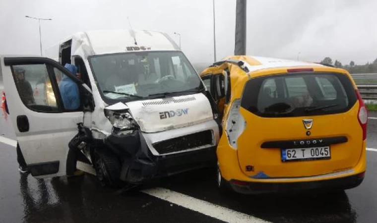 Otoyolda işçi servisi ile taksi çarpıştı: 13 yaralı