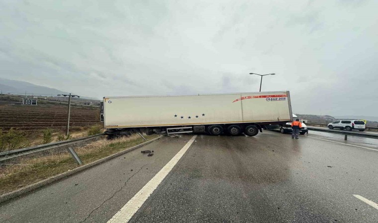 Tarsus-Adana-Gaziantep (TAG) otoyolunda yağışlı havanın etkisiyle kontrolden çıkan tır bariyerlere çarptı. Çarpmanın etkisiyle tır sürücüsü hafif şekilde yaralandı.