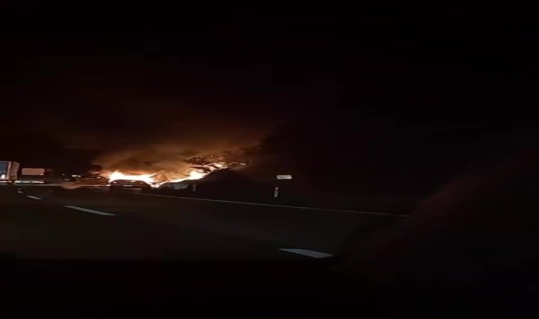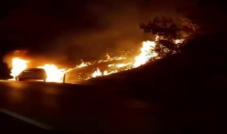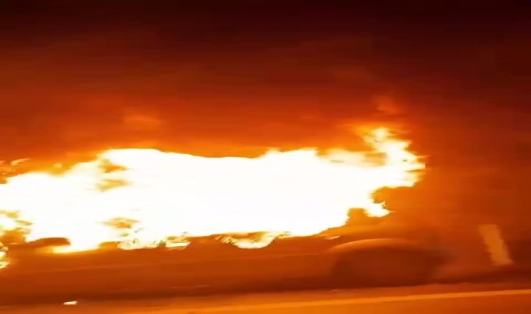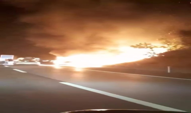 Ölen ve yaralananın olmadığı yangını yoldan geçen sürücüler cep telefonlarıyla görüntüledi.
