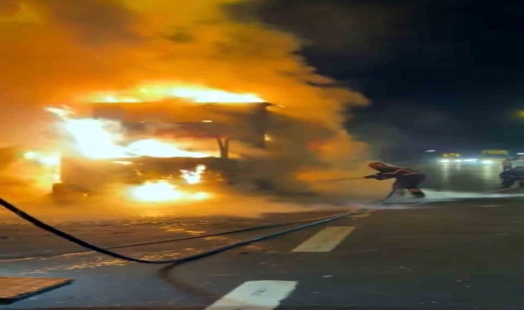 Öte yandan, tırın alev topun döndüğü anlar cep telefonu kamerası ile saniye saniye kaydedildi. Görüntülerde; alevlerin yükseldiği bölgede itfaiye ekiplerinin yangına müdahale ettiği ve araçtan geriye hurda yığının kaldığı görüldü. Maddi hasarın meydana geldiği yangına ilişkin inceleme başlatıldı.