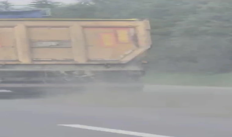 Olay saat 12.30 sıralarında, Gebze İstanbul - Otoyolu'nda meydana geldi. Seyir halindeki TIR'ın damperli dorsesinden otoyola çamur döküldüğünü gören sürücüler, o anları cep telefonu kamerası ile kaydetti. Görüntülerde, TIR'ın dorsesinden çamur dökerek yoluna devam ettiği görünüyor. (DHA)