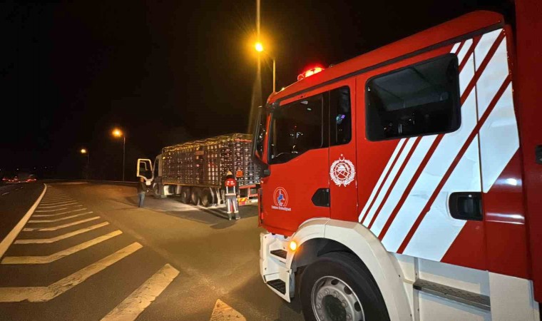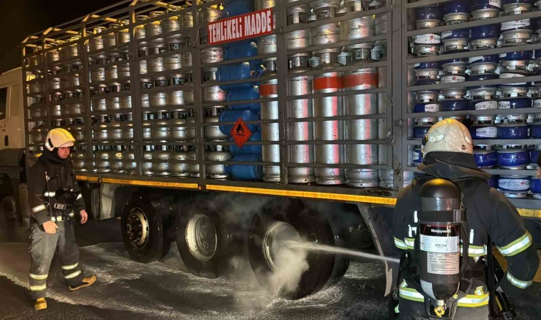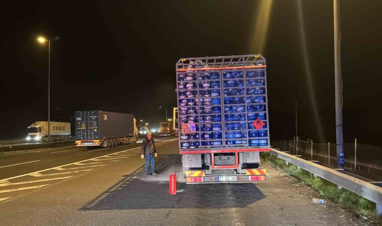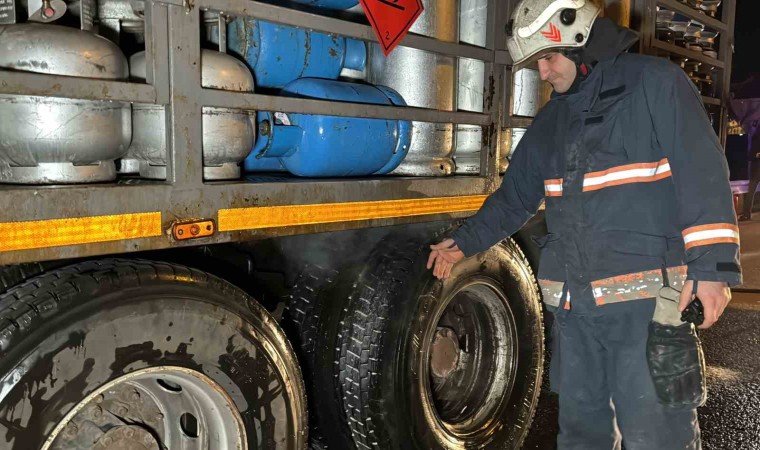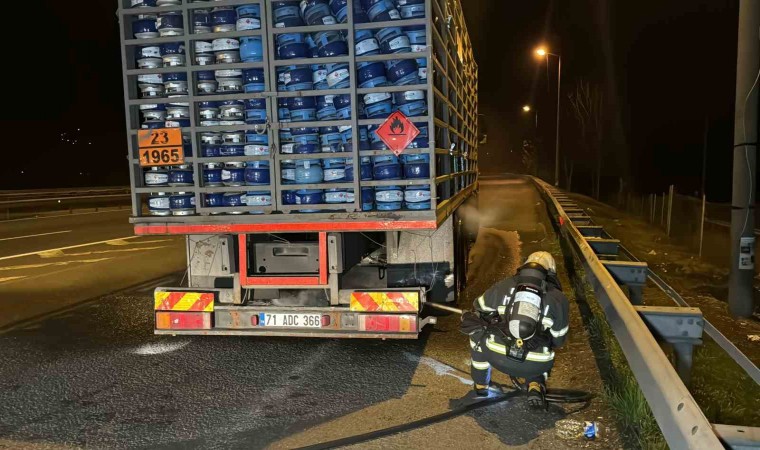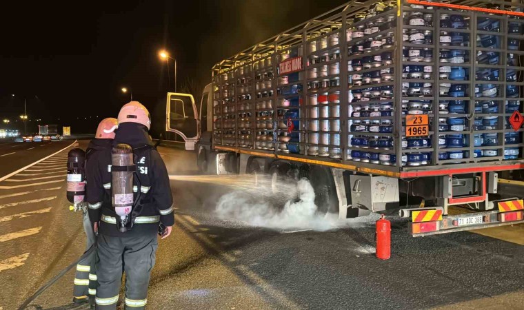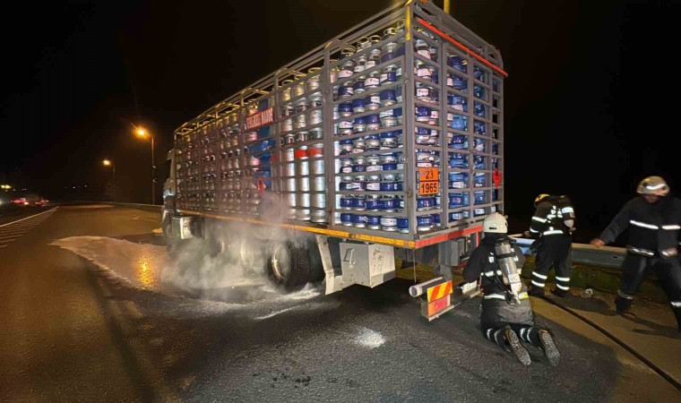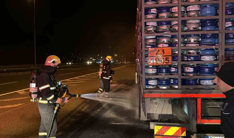 Anadolu Otoyolu’nda Gümüşova rampalar mevkiinde tüp yüklü kamyonun balataları tutuştu. Yangının büyümesini polis ekipleri engelledi.
