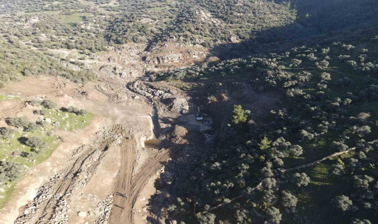 Aydın’ın Çine ilçesinde yapımına başlanan Ovacık HİS Göleti’nde gövde sıyırma çalışmaları devam ediyor.