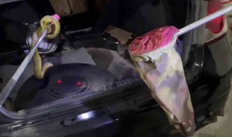 Sivas’ta bir aracın bagaj kısmına giren yılan itfaiye ekiplerince çıkartılarak doğaya salındı.