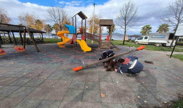 Kocaeli Büyükşehir Belediyesi ekipleri, çocuk oyun grupları ile açık hava spor alanlarındaki donatıların bakımlarını periyodik olarak yerine getiriyor.