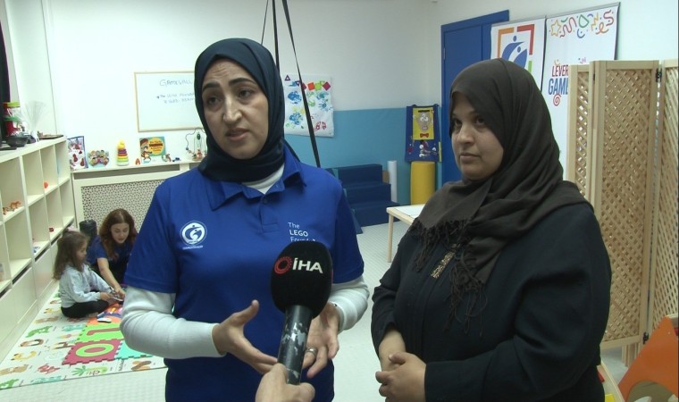 Çocuklarla birlikte ebeveynlere de destek verdiklerini, eğitimlerle çocuklara olan davranışlarla birlikte çocuğun gelişimine destek verdiklerini vurgulayan, çocuk gelişimi ve uzmanı Aleyna Sarıkaya, “Burada çocuklarımızla tanışma sürecinde ilk başta 5 gelişim alanlarını değerlendiriyoruz. Çocukların güçlü ve desteklenmeye ihtiyacı olduğu yanlarını ortaya çıkardıktan sonra ailelerle işbirliği yaparak oyun temelli bir müdahale planı uyguluyoruz. Hem burada çocuğun gelişimini desteklerken hem de aslında çocuğun hakkı olan oyuna erişimini sağlıyoruz. Burada bulunan çeşitli materyallerin hepsi çocukların farklı gelişim alanlarını desteklemek üzere üzerinde düşünülmüş şekilde alana yerleştirildi. Aynı zamanda alanın güvenliği de ayrıca gözetildi. Çünkü çalıştığımız grup hem özel gereksinimli hem normal gereksinimli hem de küçük yaşlarda olduğu için alanın tasarımında güvenliğe çok önem verdik. Çocukların oyuna güvenle ve şefkatle erişebilmesi için bizler burada gayret ediyoruz. Hem oyunla gelişsinler hem haklarına erişsinler hem de oyunla güçlensinler istiyoruz” açıklamalarında bulundu.