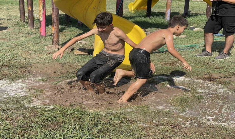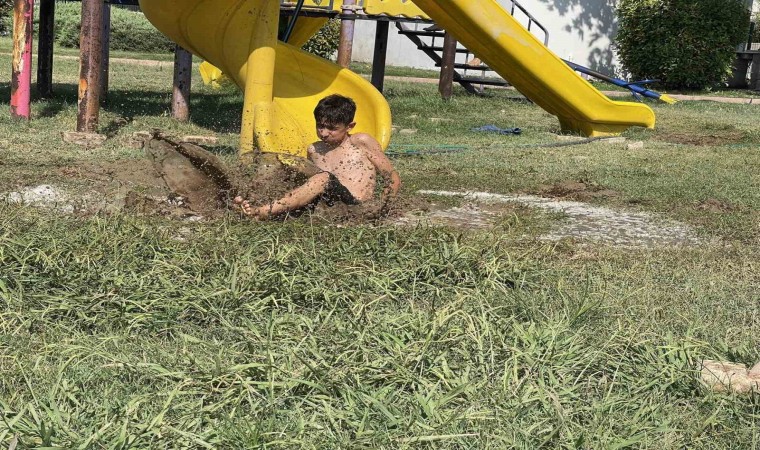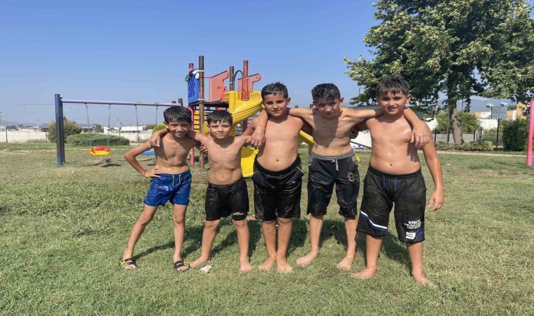 Çocuklar, havalar çok sıcak olduğu için evde canlarının sıkıldıklarını belirterek serinleyerek doyasıya eğlendiklerini söylediler.