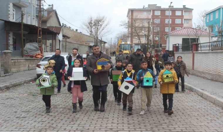 Van’ın Özalp ilçesindeki ilkokul öğrencileri örnek bir projeye imza attı. Öğrenciler, atık malzemeleri kullanıp 150 adet kuş evi yaparak ilçenin belli yerlerine yerleştirdi.