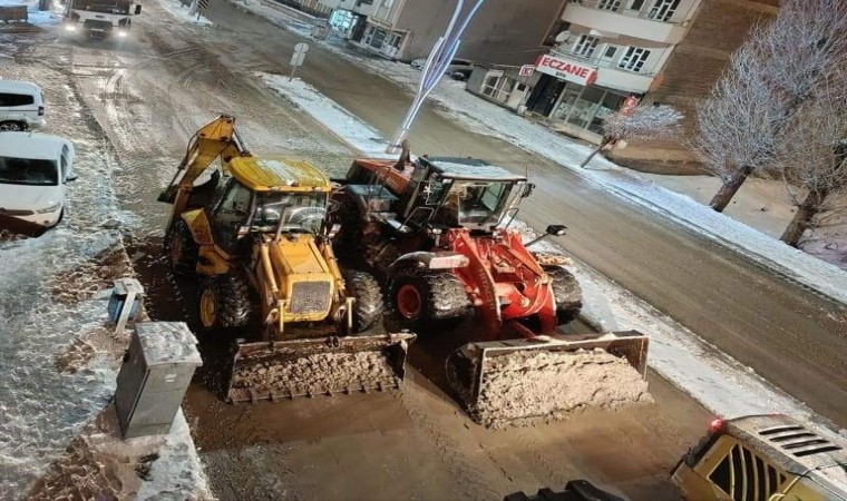 Özalp Belediyesi karla mücadele ekipleri bir yanda kırsal mahalle yollarını açarken, bir yandan da şehir merkezini kardan temizliyor.