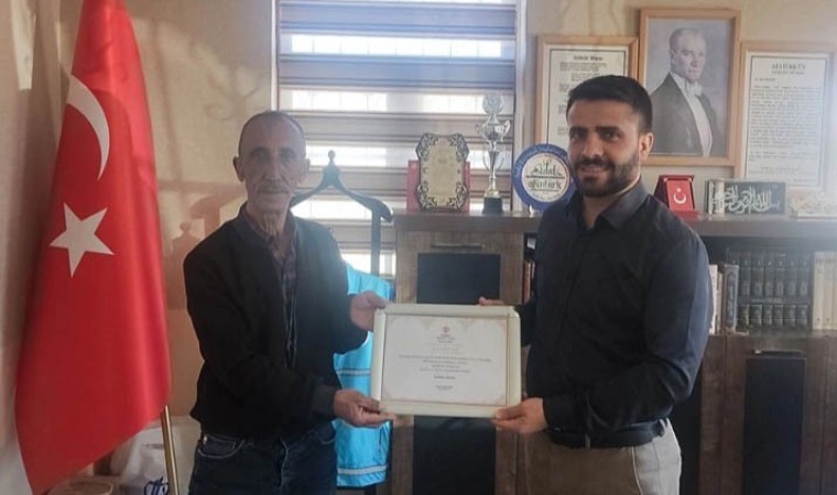 Özalp İlçe Müftüsü Sedat Şentürk, din ve değerler konusunda eğitici yayınlar yapan "TRT Diyanet Çocuk" kanalının ilçe genelinde yayılmasında gönüllü olarak görev üstlenen Cahit Can’a İlçe Müftülüğü adına teşekkür belgesi takdim etti.