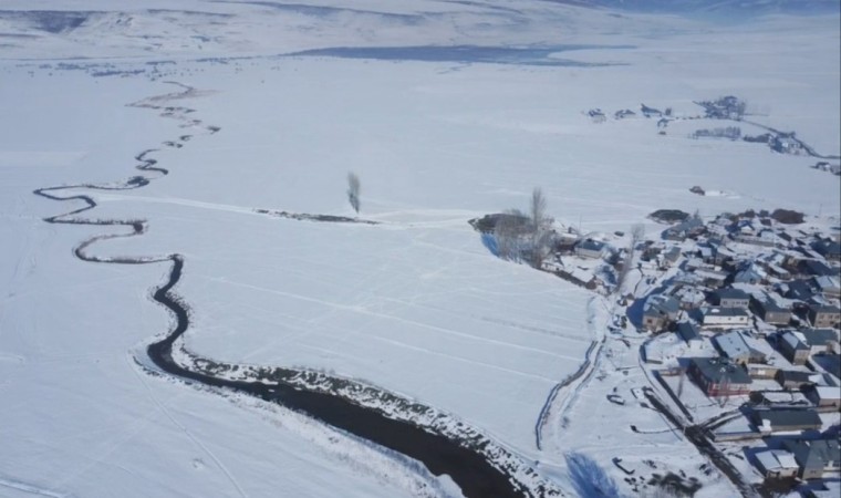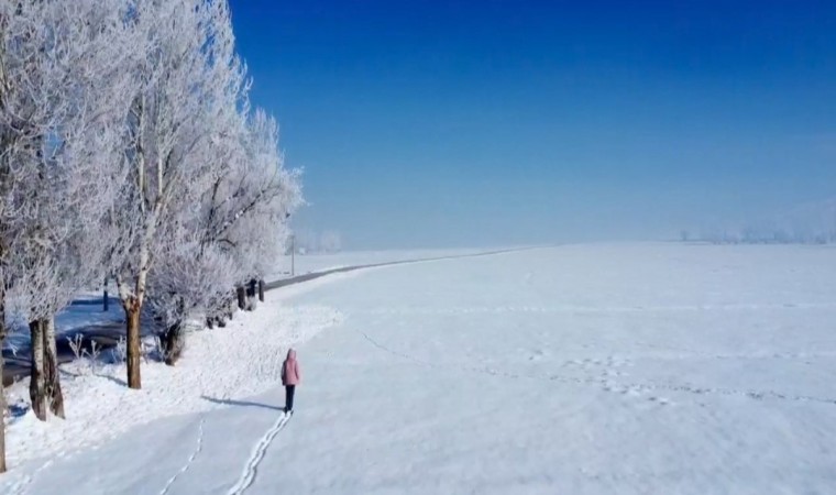 Havadan da görüntülenen kırağı tutmuş ağaçlar ve menderes görenleri hayran bırakıyor.