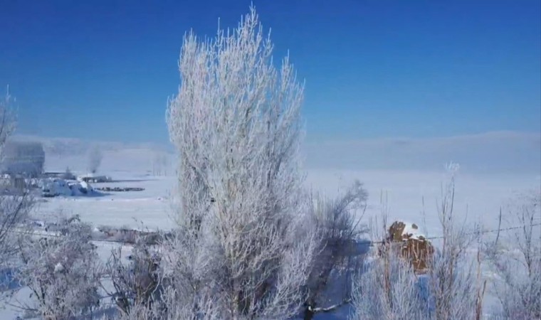 VAN (İHA) – Van’ın Özalp ilçesinde kar yağışının ardından ağaçlar kırağı tutarken, kıvrılarak giden menderes ise güzel şölen sundu.