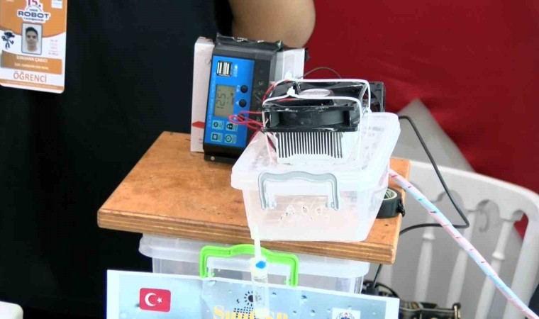 Bursa’da gerçekleştirilen 15. Uluslararası Robot Yarışması’nda Türkiye’nin birçok lise öğrencilerinin projeleri yer aldı. Özel lise öğrencileri İlyashan Çakıcı, Yahya Niyazi Kirli ve 4 arkadaşı ile birlikte geliştirdikleri sistemle güneşten elde ettikleri enerjiyle saf su elde etti. 6 öğrencinin geliştirdiği projede güneş panelinden alınan enerjiyle dışarıdan alınan hava ile içerideki soğuk hava birleştirilerek su üretiliyor. Üretilen su tarımda sulama suyu olarak kullanılabiliyor. Bunun yanı sıra gerekli mineraller katılınca su içilebiliyor. Sergi alanında tanıtım amaçlı kurulan düzeneğin açık havada saatte 5ml kapalı alanda ise 3 saatte 5 ml su üretebildiklerini söyleyen gençler, yeterli destek bulabildiklerinde tarım sektörü için seralara özel proje geliştireceklerini, çiftçilerin bu sayede ücretsiz enerji ve sulama suyuna ulaşabileceklerini aktardı.