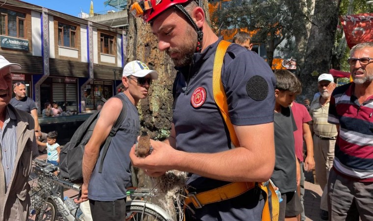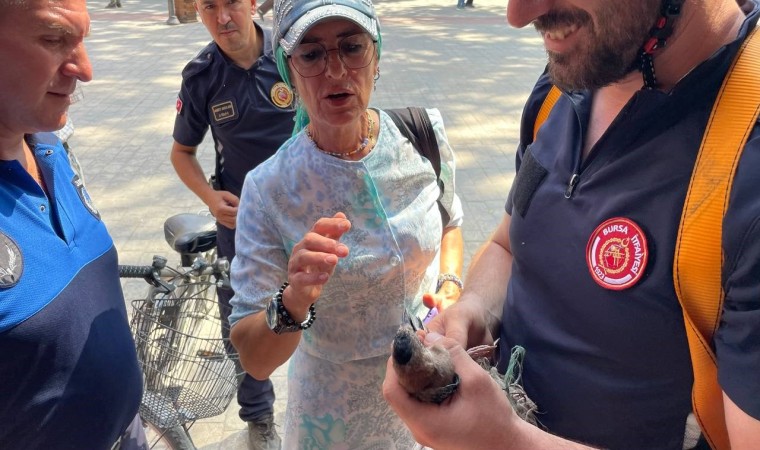 Bursa’da ayakları ipe dolanmış şekilde 152 yıllık anıt ağaçta mahsur kalan kuş, Büyükşehir İtfaiyesi ekipleri tarafından kurtarıldı.