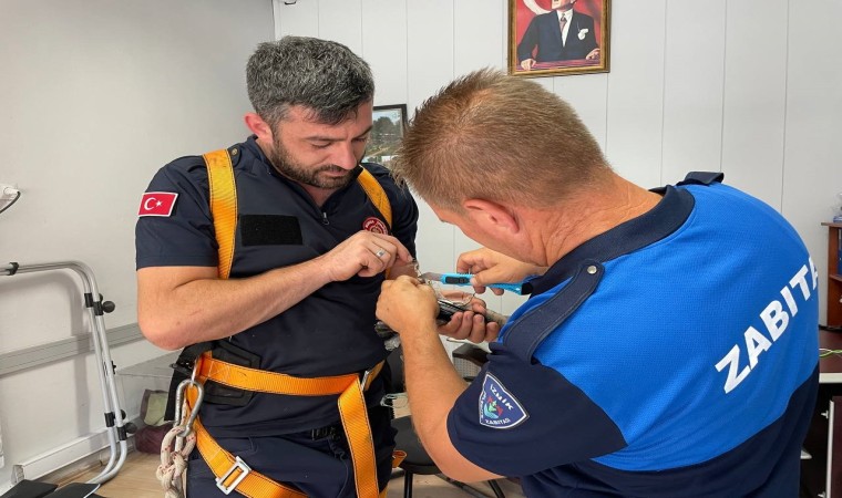 Edinilen bilgiye göre, çarşı merkezindeki vatandaşlar; kuşun uçamadığını olduğu yerde kanat çırptığını fark ettiler. Kuşun ayaklarına ip dolandığını gören vatandaşlar durumu belediye ekiplerine bildirdi.