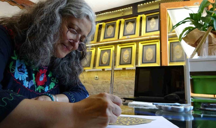 Okuldan mezun olduktan sonra İstanbul’da ilk atölyesini açtığını ve 1999 yılından bu yana difenbahya yaprakları üzerine çalışmaya başladığını ifade eden Hülya Kalaycı Unutur, difenbahya yaprağında minyatür sanatı üzerine çalıştığını, Hollanda’dan getirttiği difenbahya yaprağını 2 yıl özel kuruma aşamasından sonra kullandığını söyledi. Difenbahya yaprağının kağıda en yakın yaprak ve çalışmada kolay olduğunu belirten Kalaycı, “Difenbahya yaprağını Hollanda’dan getiriyoruz. Yaklaşık 2 yıl özel koruma aşamasından geçtikten sonra çalışıyorum. Çalıştığım desenlerde 1 gün ile 1 ay arasında değişiklik oluyor. 1 ayı geçen sürede oluyor. Yapraklarda 25’inci yılım. 25’inci yıla özel 2 koleksiyon hazırladım. Bu koleksiyonlardan biri İslami motiflerden oluşuyor. Çanakkale’nin özel simgeleriyle bitiyor. İkinci koleksiyonda ise hayvan çeşitlerini çizdim. 1999 yılından 2024 yılına kadar yaptığım eserlerden ön plana çıkan eserlerden oluşuyor. Çanakkale’yi anlatan çizimler zeytin ağacı, Troya efsanesi, Şehitler Abidesi, Athena Tapınağı” dedi.