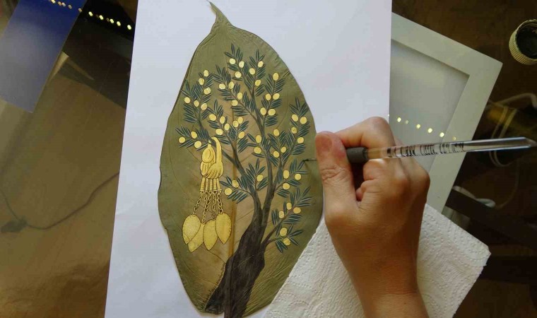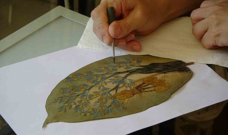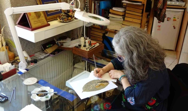 Çanakkale’nin Ayvacık ilçesine bağlı Behramkale köyünde yaşayan Hülya Kalaycı Unutur (51), Hollanda’dan ithal ettiği ve 2 yıl boyunca özel bir sistemle kuruttuğu difenbahya bitkisi yapraklarına 25 yıldır adeta hayat veriyor. Unutur, Çanakkale’nin simgeleri, hayvanlar, İslami motifler başta olmak üzere binlerce eseri kağıda yakın olan difenbahya yaprağına çizdi.