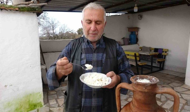 Çanakkale’nin Ayvacık ilçesine bağlı Şap köyde 400 yıllık tepme peyniri geleneği sürüyor. Tepme peyniri, hazırlanış süreci ve toprak altında kalmasıyla 1 yılda olgunlaşıyor. Kilosu ise 500 liradan satılıyor.