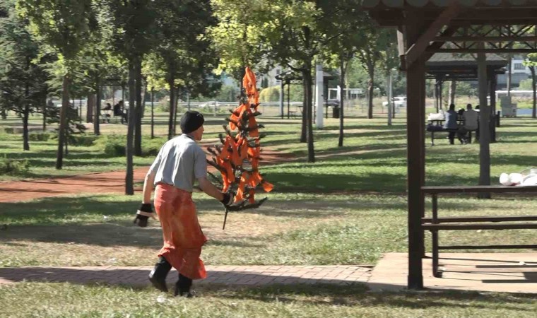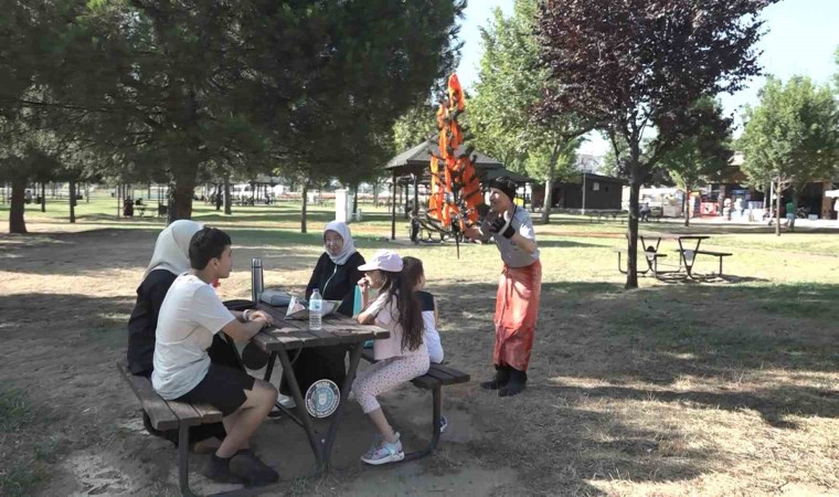 Keskin, parkta piknikçilerin arasına girip, orman yangınlarının çıkmasına sebep olacak durumları, nelere dikkat etmeleri gerektiğini dile getirdi.