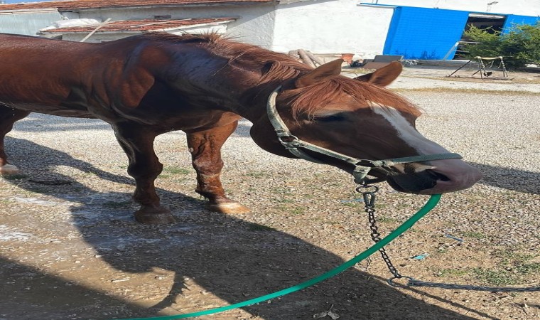 Eskişehir’de 40 dereceye kadar çıkan sıcaklıklardan bunalan Ova isimli at, bahçe hortumunu pipet gibi kullanarak su içip serinliyor.