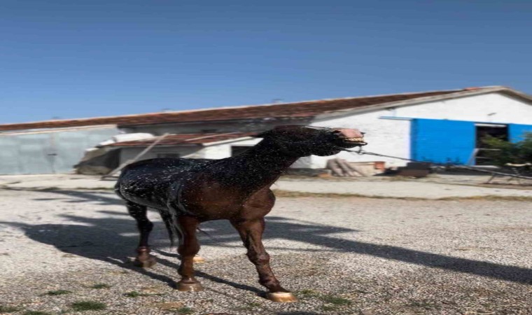 Mahmudiye ilçesinde yetiştirilen atlarda mevcut sıcaklardan nasibini alıyor. Türkiye genelinde yetiştirdiği şampiyon atlar ile ününü duyuran ilçede yetiştiriciler, hayvanlarını çeşitli yollarla serinletiyor. İlçede çocukluğundan bu yana atlarla haşır neşir olan Yenel Kaya’nın Ova isimli atı, her gün bahçe hortumunu pipet gibi kullanarak litrelerce su tüketiyor. Bu yöntemle alışılmışın dışında su içerek ilgi çeken atın ise adeta keyfine diyecek yok. Su içtikten sonra yetiştiricisi Yenel Kaya tarafından ıslatılarak adeta soğuk duş aldırılan at daha sonra yem yemek için alana salınıyor. Sıcaklıkların kimi zaman 40 dereceyi bulduğu ilçede atlar ıslatılarak serinlenmeleri sağlanıyor.