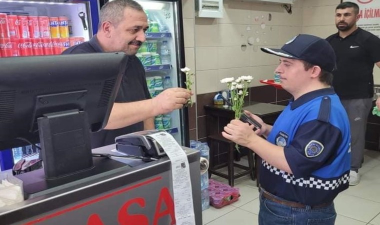 Kocaeli’nin Gölcük ilçesinde özel birey Mustafa Erol’un zabıta olma hayali gerçek oldu. Giydiği üniforma ve telsizle Gölcük Belediyesi Zabıta Müdürlüğü ekipleri ile sahaya çıkan Mustafa Erol, elindeki çiçeklerle esnafı denetledi.
