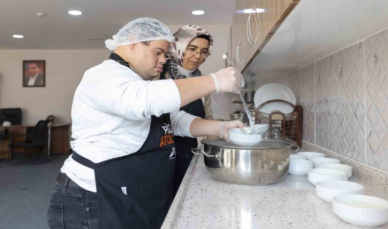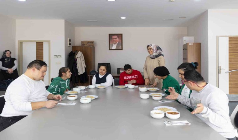 Mersin’de özel bireyler Büyükşehir Belediyesi’nin Mutfak Atölyesi’nde yemek yapmayı öğreniyor. Pişirdikleri yemekleri kurdukları sofrada yiyen özel bireyler, atölyede sofra kurallarını da öğreniyor.