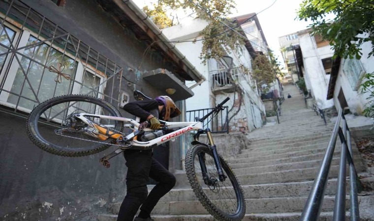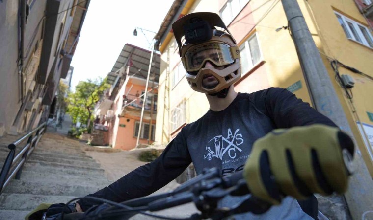 Bursa’nın en dik ve en uzun merdiveninde yaklaşık 225 basamağı bisikletiyle 10 saniyede inen Emir Melik Peker, “Dünya’da downhill sporu olarak geçiyor, Türkçeye çevirdiğimiz zaman dağ bisikleti ile tepeden iniş anlamına geliyor. Normal şartlarda bu sporun orijinalinde dağlardan iniyoruz. Patikalar, rampalar topraktan her şey olabiliyor. Şehir içi parkurlar işin görsel kısmı. Ayrı bir zevki var, sosyal medya kısmında bize yardımcı olabiliyor. 2019 yılından bu güne tepeden iniş yapıyorum. Daha öncesinde başka kategorilerde yarışmıştım. 2019 yılından itibaren katıldığım yarışlarda 2 Türkiye şampiyonluğu kazandım. Birçok özel yarışta derecem var. Ayrıca yurtdışında genel kategoride 1. olan ilk sporcuyum. Bu spora girdiğimiz zaman sponsor ihtiyacı duyuyoruz. Bunun da en büyük kaynağı sosyal medya oluyor. O nedenle sosyal medyaya içerik üretiyoruz. Genellikle şehir içi parkurlar görsel açıdan heyecanlı olduğu için insanların ilgisini çekiyor. Dağda sürdüğümüz zaman insanlar bunu anlamıyor ama merdivenlere geldiğimiz zaman işin ciddiyetini ortaya çıkartıyor. Burası Bursa’nın en dik ve uzun merdiveni, yaklaşık 225 basamak. Frenler bir aşamada artık işlevini kaybediyor. Çıkması 10 dakika, inmesi 10 saniye” şeklinde konuştu.